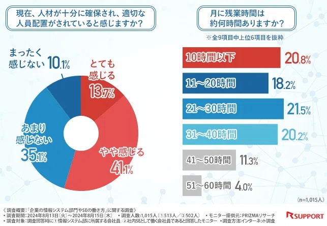 ✅️情シス・SEの部署内による人員配置と残業時間の現状