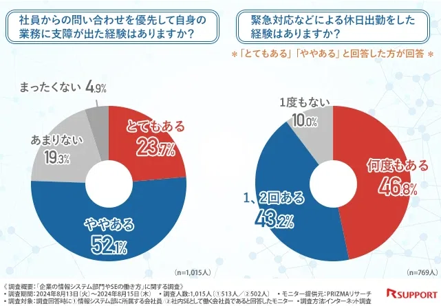 9割の方が緊急対応のため休日出勤をした経験があるということが判明しました。