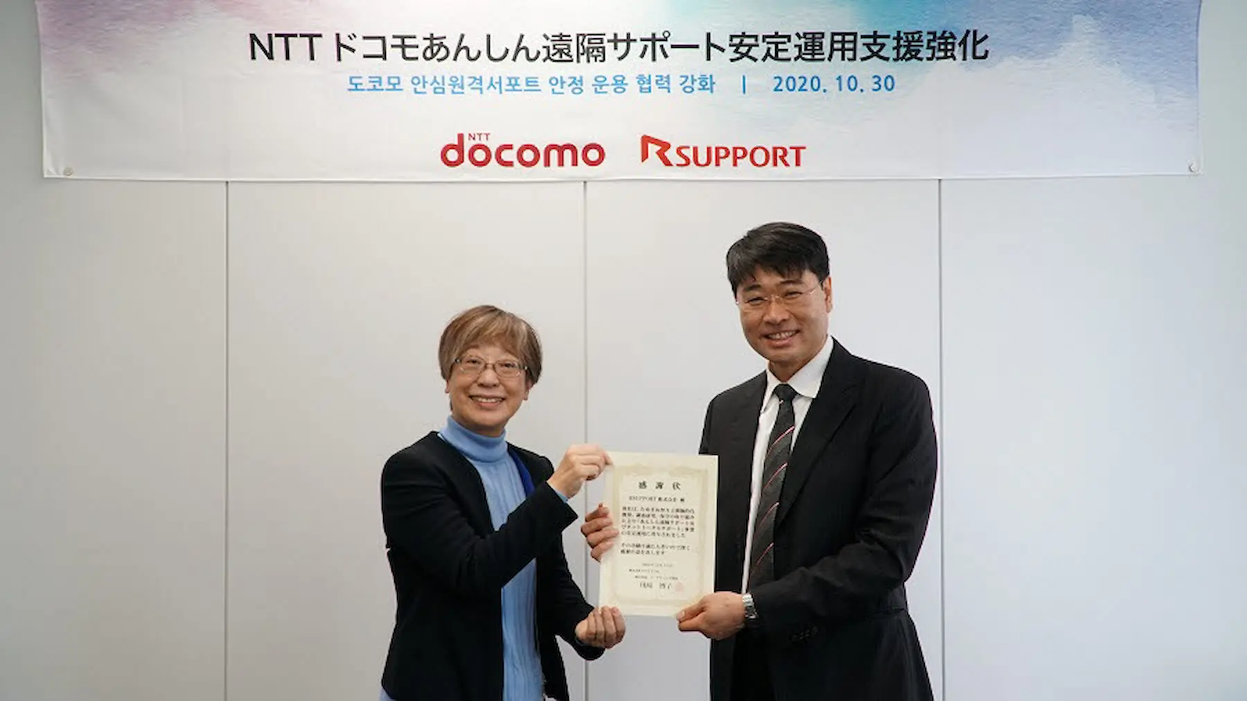 알서포트가 일본 이동통신업체 NTT도코모로부터 '안심원격 서포트' 운용 협력에 대한 감사패를 받았다.
